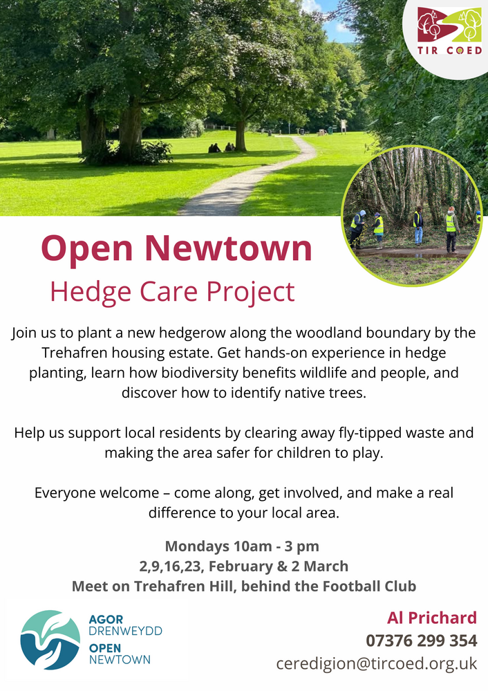 Tir Coed and Open Newtown are teaming up to plant a new hedge along the park boundary.