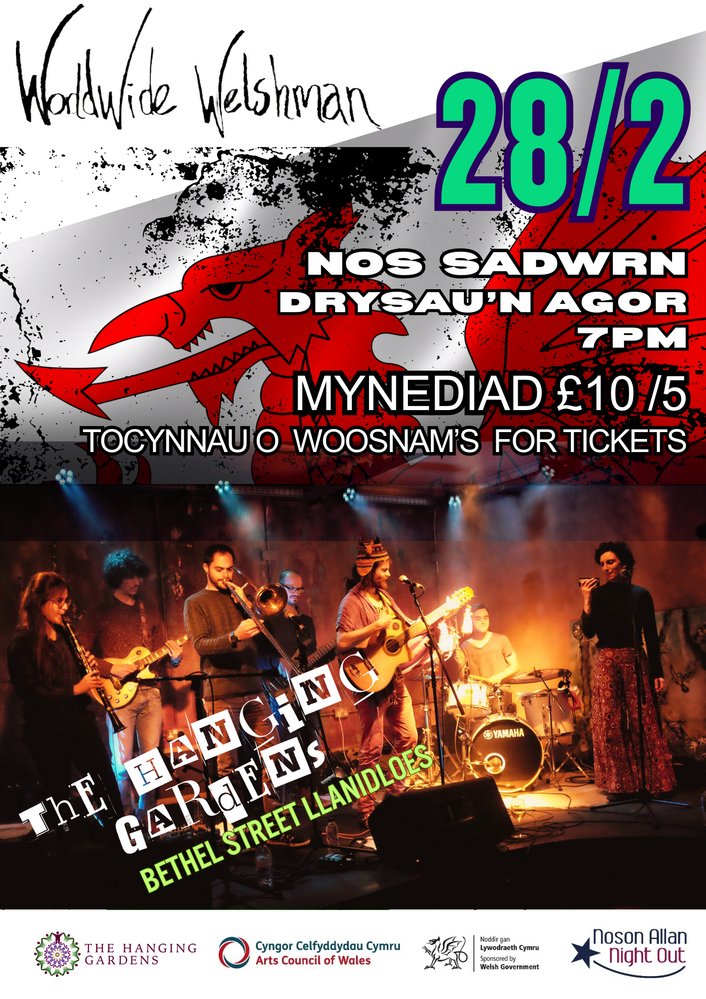 Worldwide Welshman” (Liam Rickard) – trwbadŵr o Fetws-y-coed sydd bellach yn byw ym Machynlleth, mae Liam a’i fand (sydd rhywfaint yn gwahanol bron pob sioe) wedi bod yn achosi cynulleidfaoedd ar hyd a lled Ewrop i ganu, ddawnsio, chwerthin a chrio efo’u ga