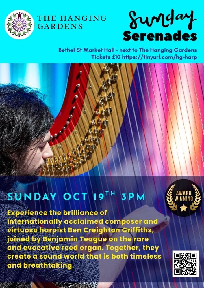 Internationally acclaimed harpist Ben Creighton Griffiths will be returning to the Hanging Gardens for a very special performance, bringing the shimmering beauty of the classical harp to this u